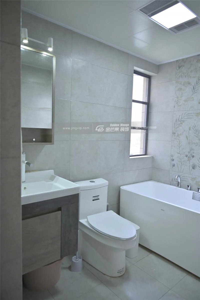 低調的暗花避免了墻面的單調,下部挑空的臺盆,降低空間擁擠感。