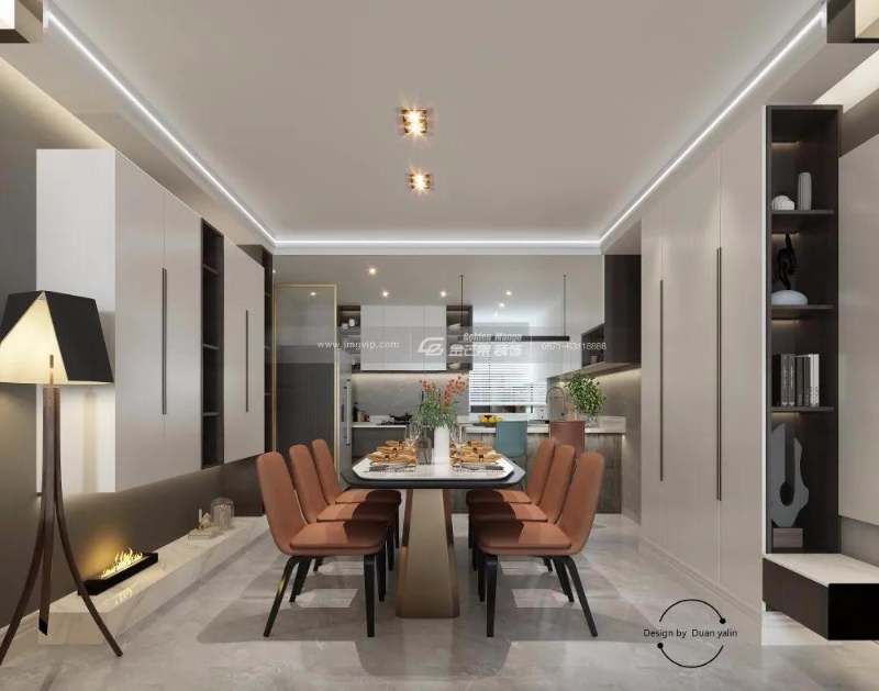 整體餐廚空間十分通透,白色餐桌搭配愛(ài)馬仕橙色的椅子,同樣起到提亮整個(gè)空間的作用,不僅與原有的簡(jiǎn)約高級(jí)相融合,更增添了一絲溫暖的氣息。