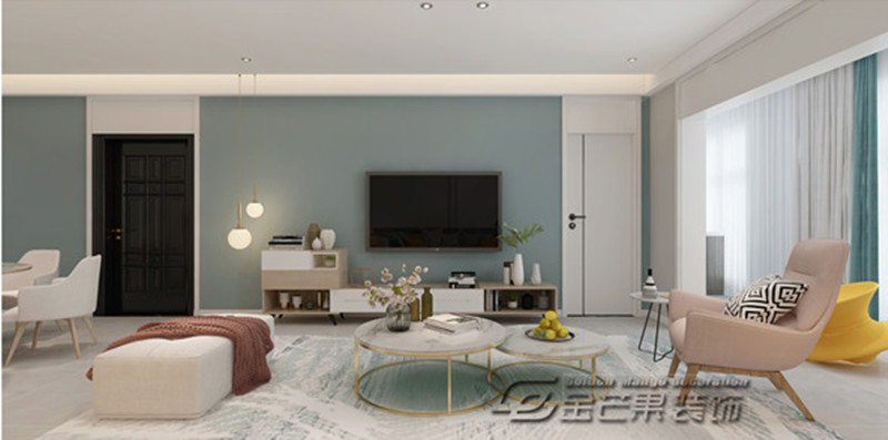 客廳整體開闊通透、舒適清新,簡約冷靜而不失溫暖,這也正是北歐風裝修帶給人最直觀的感受。
