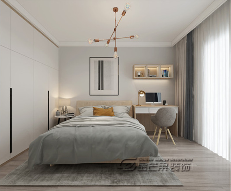 簡單大方的次臥除了滿足基本的休息睡眠外,還設計了小書桌方便辦公學習,良好的通風采光也增強了房間的舒適性。