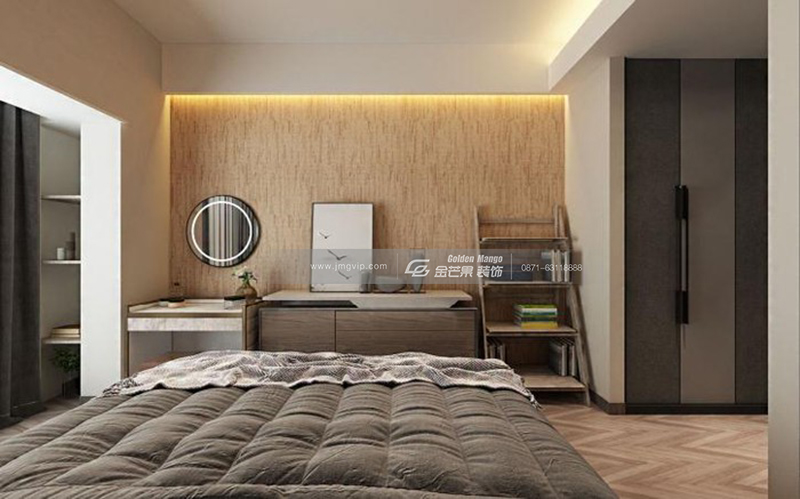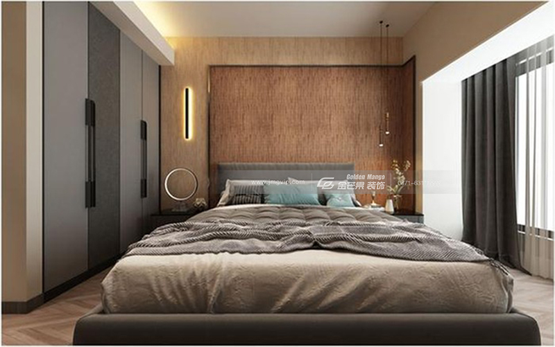 簡約大氣,端莊優雅,靈動的燈飾和床頭背景墻的端莊結合,產生一種個性的時尚感,既沉穩,但不會沉悶。