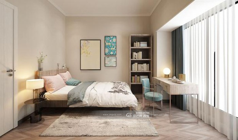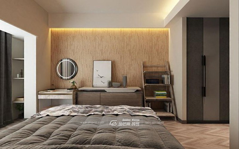 簡(jiǎn)約大氣,端莊優(yōu)雅,靈動(dòng)的燈飾和床頭背景墻的端莊結(jié)合,產(chǎn)生一種個(gè)性的時(shí)尚感,既沉穩(wěn),但不會(huì)沉悶。