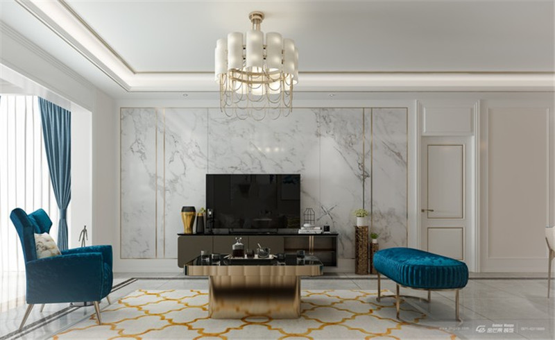 大理石電視背景墻,運用的是精致的細線條,貴氣而又簡約。