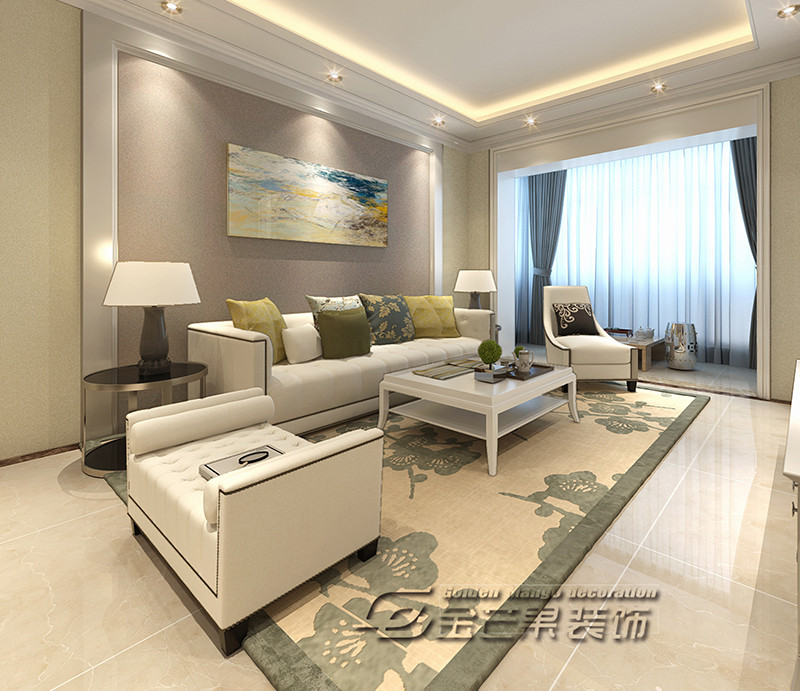 整體空間以白色為主色調,歐式的家具打造歐式風情,搭配清新、優雅的綠色,精致、有韻味。綠色的抱枕點亮整個空間,讓空間顏色、層次更豐富了。