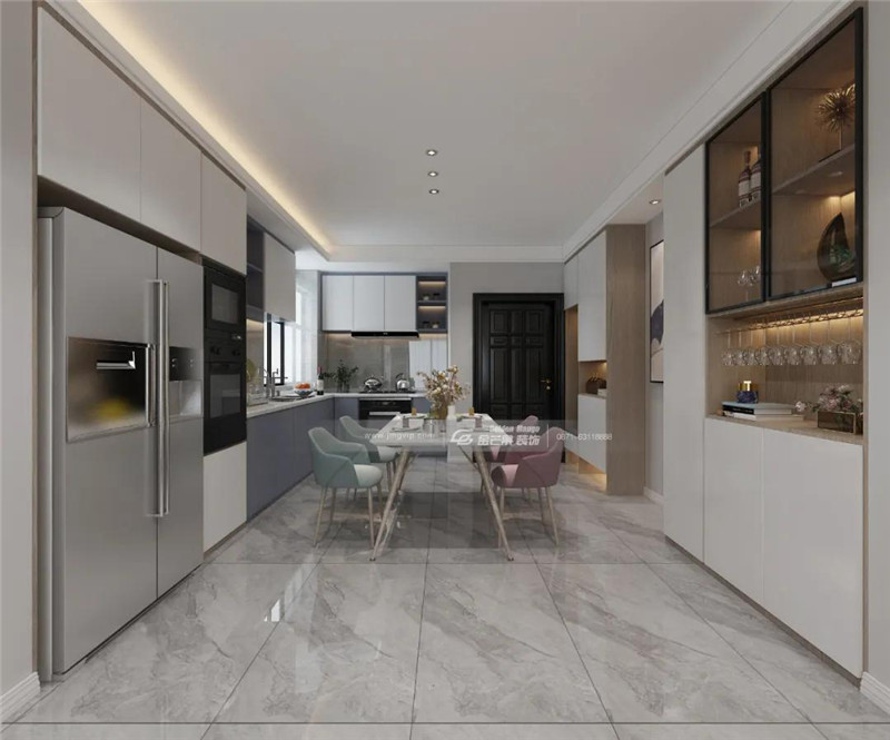原始戶型的廚房過小,設置開放性廚房,餐廚一體,“放大”空間,增加房間煙火氣。