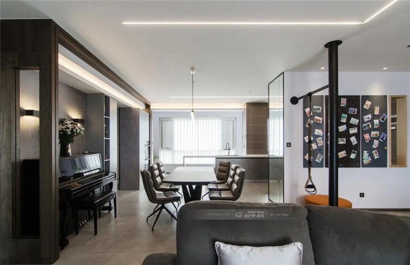 另外,考慮到男業(yè)主的健身需求,韓設(shè)計(jì)師同樣在入戶的位置設(shè)置了健身區(qū)域,寬闊的空間,男業(yè)主可以在此做一些簡(jiǎn)單的拉伸、引體向上等運(yùn)動(dòng)。此外,健身區(qū)域也可以看作是一個(gè)入戶玄關(guān)的設(shè)置。