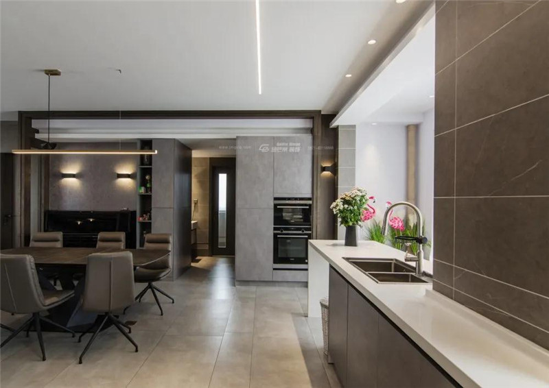 恰如裝修,往往也是一些花了心思的小細(xì)節(jié),最能打動(dòng)人心。廚房區(qū)整體也是灰色的基調(diào),白色的線條提升了層次感。一高一低的臺(tái)面滿足不同身高需求。