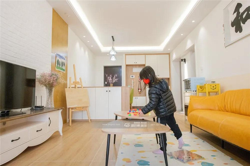 海倫國際103m2北歐風(fēng)丨柔柔的黃色主題,填滿一家三口溫暖的小時光