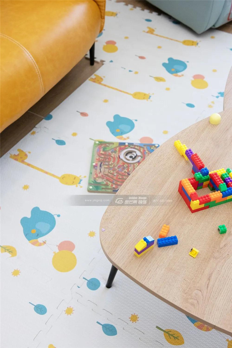 客廳選用的是很簡單的小茶幾,輕易就可以搬開,為孩子騰出一塊自由活動的天地。不管是畫畫、還是搭積木,都是很好的親子互動的空間。可愛的卡通地毯,滿足孩子的童真,也讓父母可以像孩子的朋友般,和孩子更親昵。
