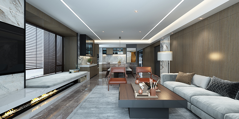 簡潔的線條突出物體本身的品質感,簡約、和諧的顏色搭配優雅又舒適。大理石材、玻璃、木飾面的運用,讓整個空間層次感豐富,不會單調。