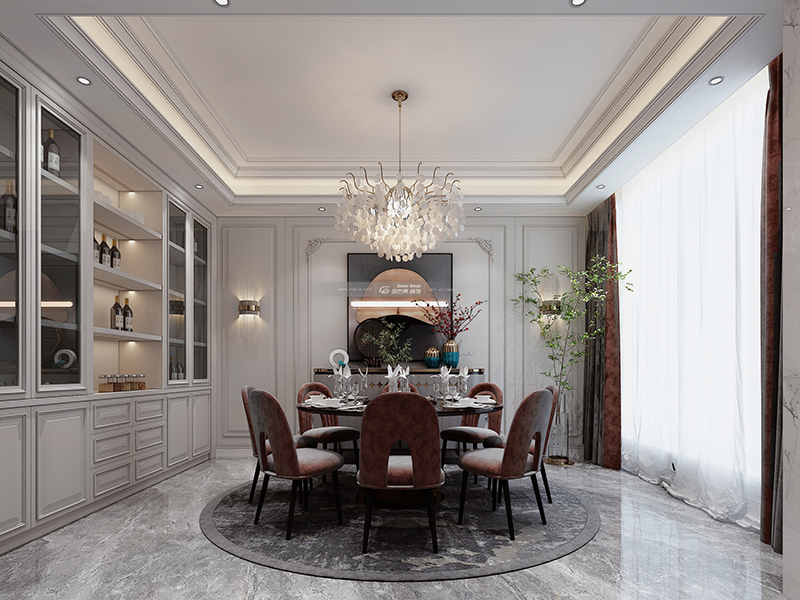 冷清高貴的配色更顯空間的優雅,沒有繁瑣的裝飾卻通過色彩和材質的搭配讓空間呈現一種優雅卻又大氣的奢華感。精致的燈飾和裝飾、精致的雕花讓每一處空間都彰顯優雅的神奇魅力。