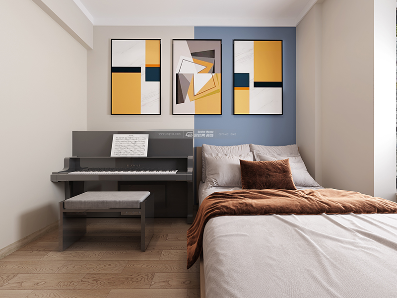用黃色的裝飾畫增加空間的活力,活潑的空間氛圍讓空間變得溫暖靈動起來。整體暖暖的色調有個性又溫馨舒適。