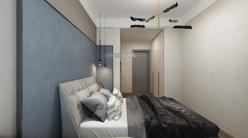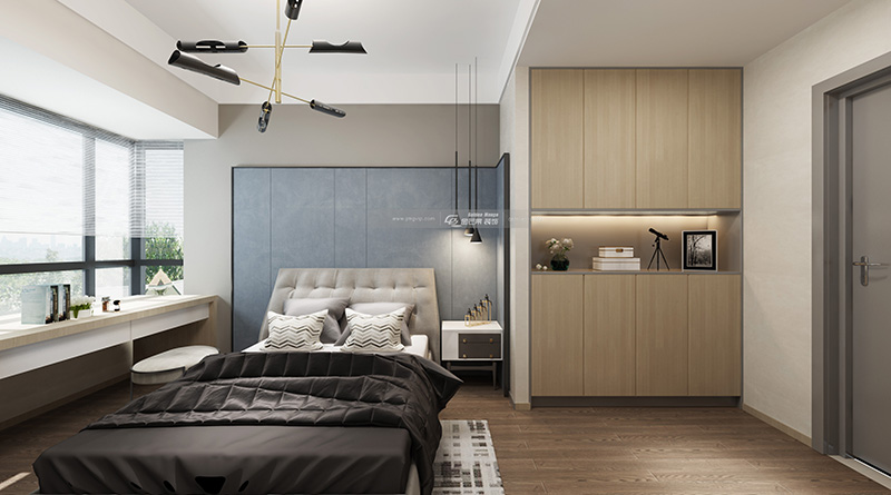 淡淡的藍色帶來藝術感和品質感,原木色系擁有讓人安心的安全感,打造的是寧靜舒適的品質空間。