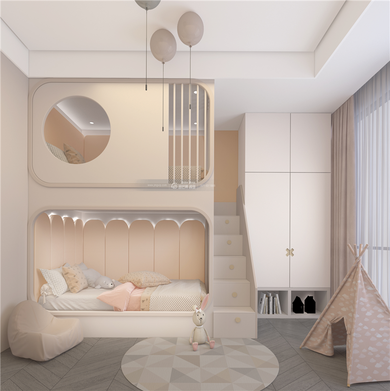 可愛的上下床為孩子營造美麗的夢幻花園,粉粉嫩嫩的顏色貼合孩子的喜好,保留純真。