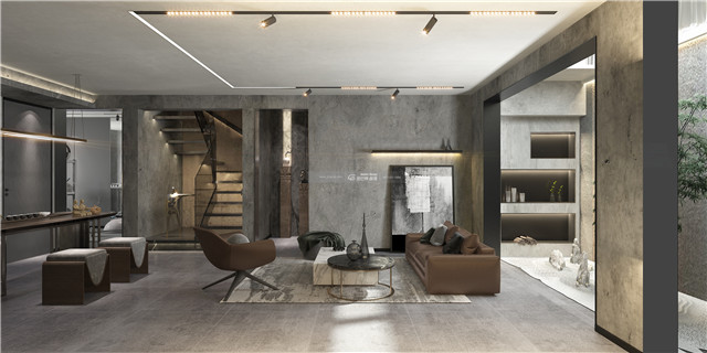 工業loft風,滿足屋主個性化需求和審美感受。整體灰色墻體搭配棕色家具,高級冷酷的感覺讓家居充滿個性,營造安穩、沉靜的感覺。
