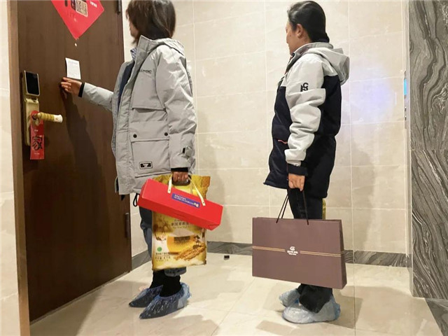 溫馨的房間,其樂(lè)融融的一家人,剛進(jìn)門(mén)我們就感受到溫暖的氛圍。我們的工作人員給袁先生一家送去新年禮物,并收集解決入住中遇到的一些問(wèn)題,為袁先生的幸福小家更添舒適。