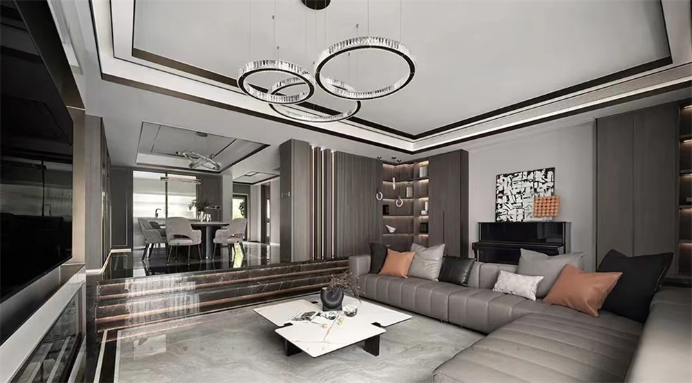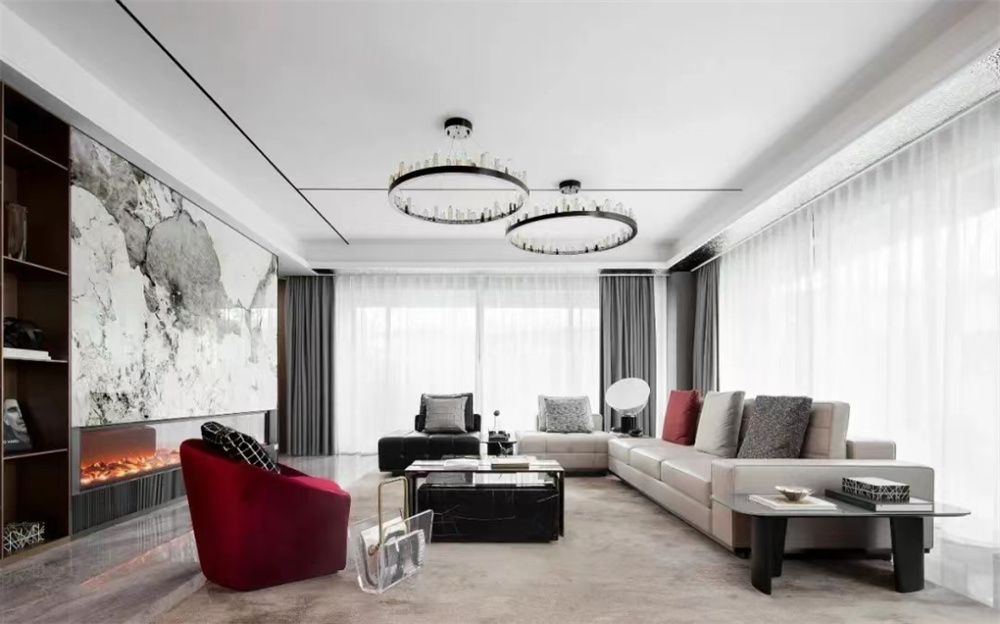 無主燈:無主燈設計是指空間內沒有安裝大功率的主燈,而是在頂面分散安裝了各種小功率的筒燈或者射燈等,不僅保證了整體照明需求,還可以按照不同的照明需求進行開關設置,滿足局部照明需求,功能上更加多樣化。