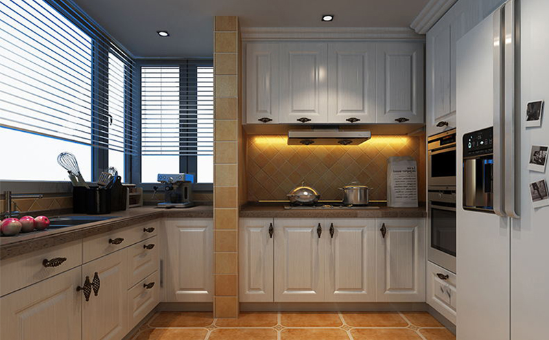 廚房空余空間可以安裝一些吊柜和收納掛件,來增加收納空間,以防后期東西越擺越多,收納不方便。廚房地面要注意鋪貼防滑瓷磚,以幫助防滑,瓷磚要選縫隙小一點(diǎn)的,好清理。