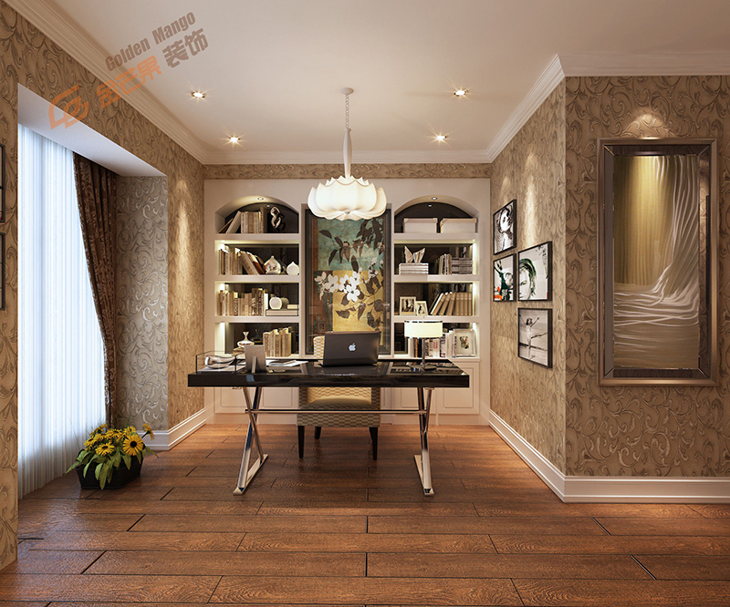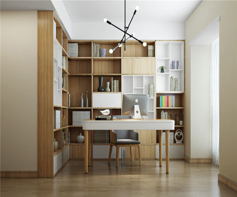 在晚上或陰天看書時,需要燈光的輔助,一般書房也都會安裝日光燈、吸頂燈等,如果安裝吊燈的話,注意吊燈的位置不要過低,以免在背光處產生陰影,給人產生一種壓抑的感覺。