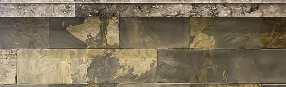 表面平整、色澤一致,接縫處理及紋理拼花吻合,1.5m處正視不顯拼縫,表面無明顯膠跡。
